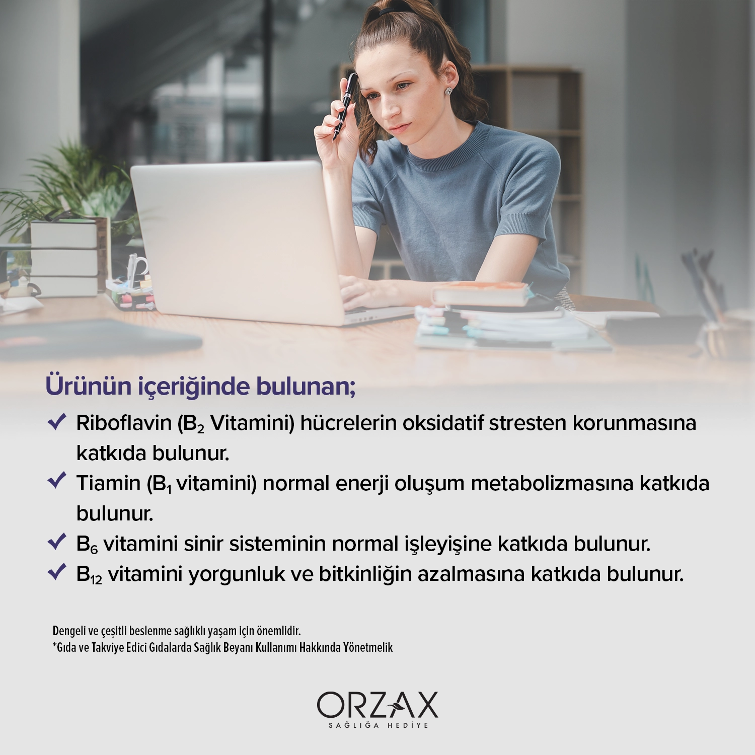 - B12, B6, Tiamin (B1 vitamini) sinir sisteminin normal işleyişine, yorgunluk ve bitkinliğin azalmasına katkıda bulunur.