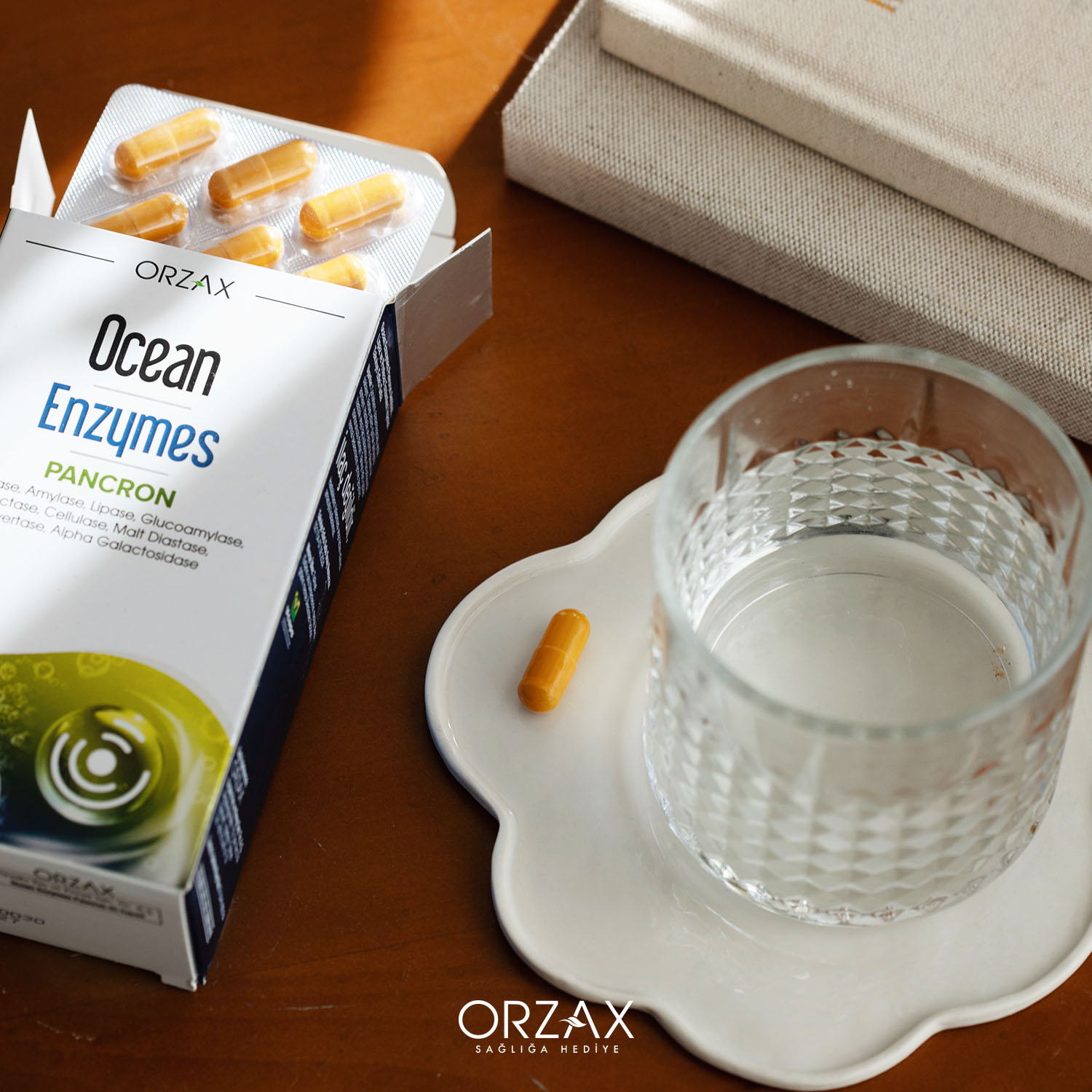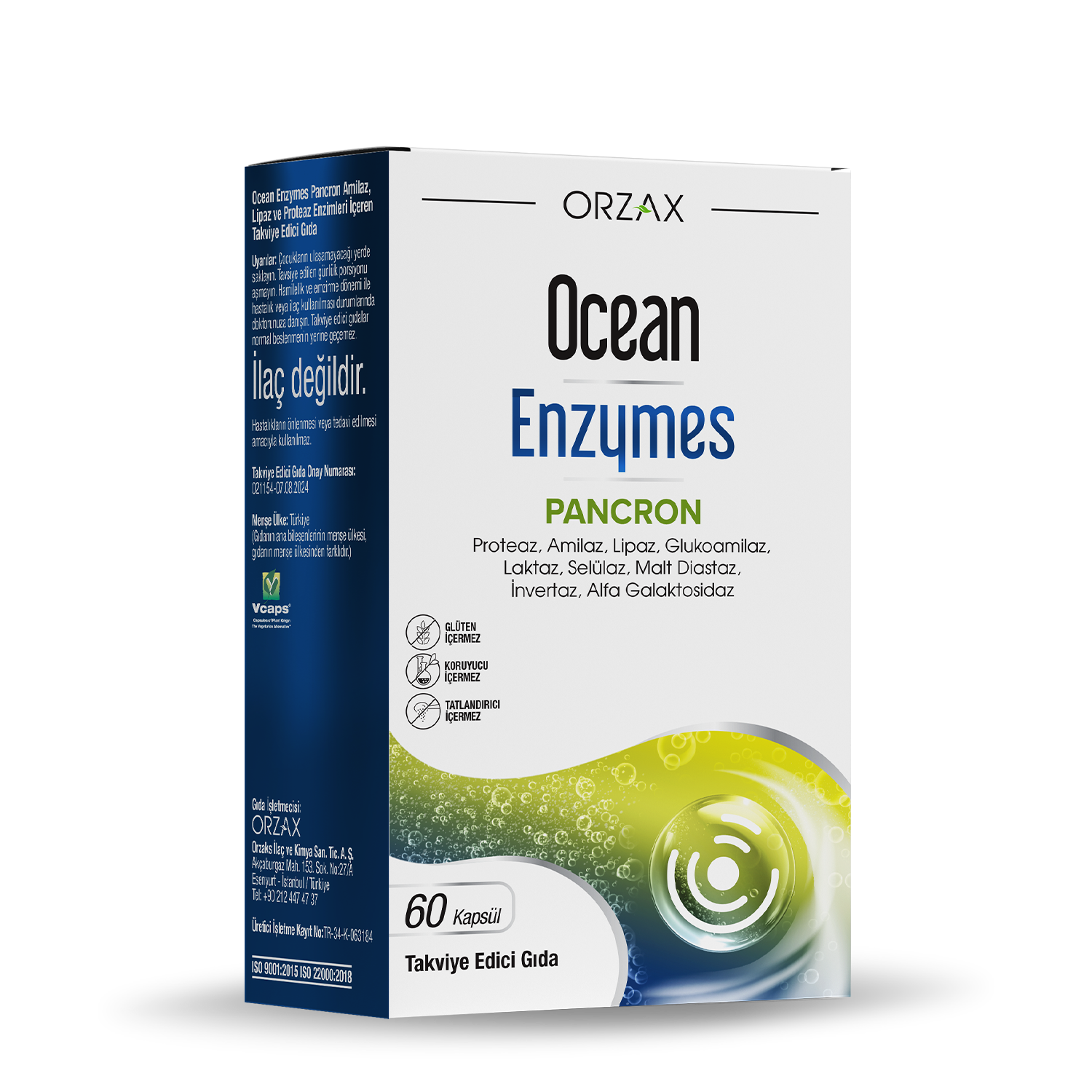 Ocean Enzymes Pancron, 955,3 mg sindirim enzimleri karışımı sunan; şekersiz, glutensiz ve katkı maddesi içermeyen kapsül formunda bir gıda takviyesidir