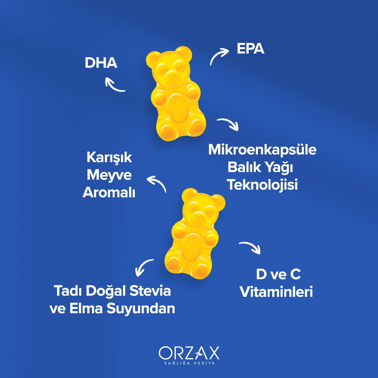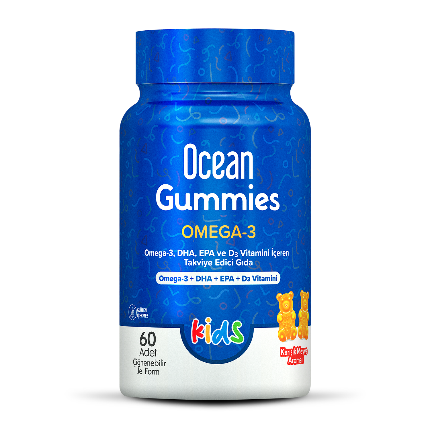Ocean Gummies Omega-3 Kids DHA, EPA, D vitamini ve C vitamini içeren çiğnenebilir jel formda bir gıda takviyesidir. Karışık meyve aroması ile lezzetli bir deneyim sunar. Ocean Gummies Omega-3 Kids jelatin, glüten, koruyucu, yapay renklendirici içermez. Ocean Gummies Omega-3 Kids, Türkiye’nin çiğnenebilir jel formda takviye edici gıda Ar-Ge ve üretimi gerçekleştirmek üzere kurulan ilk tesisinde geliştirilmiş ve üretilmiştir.
