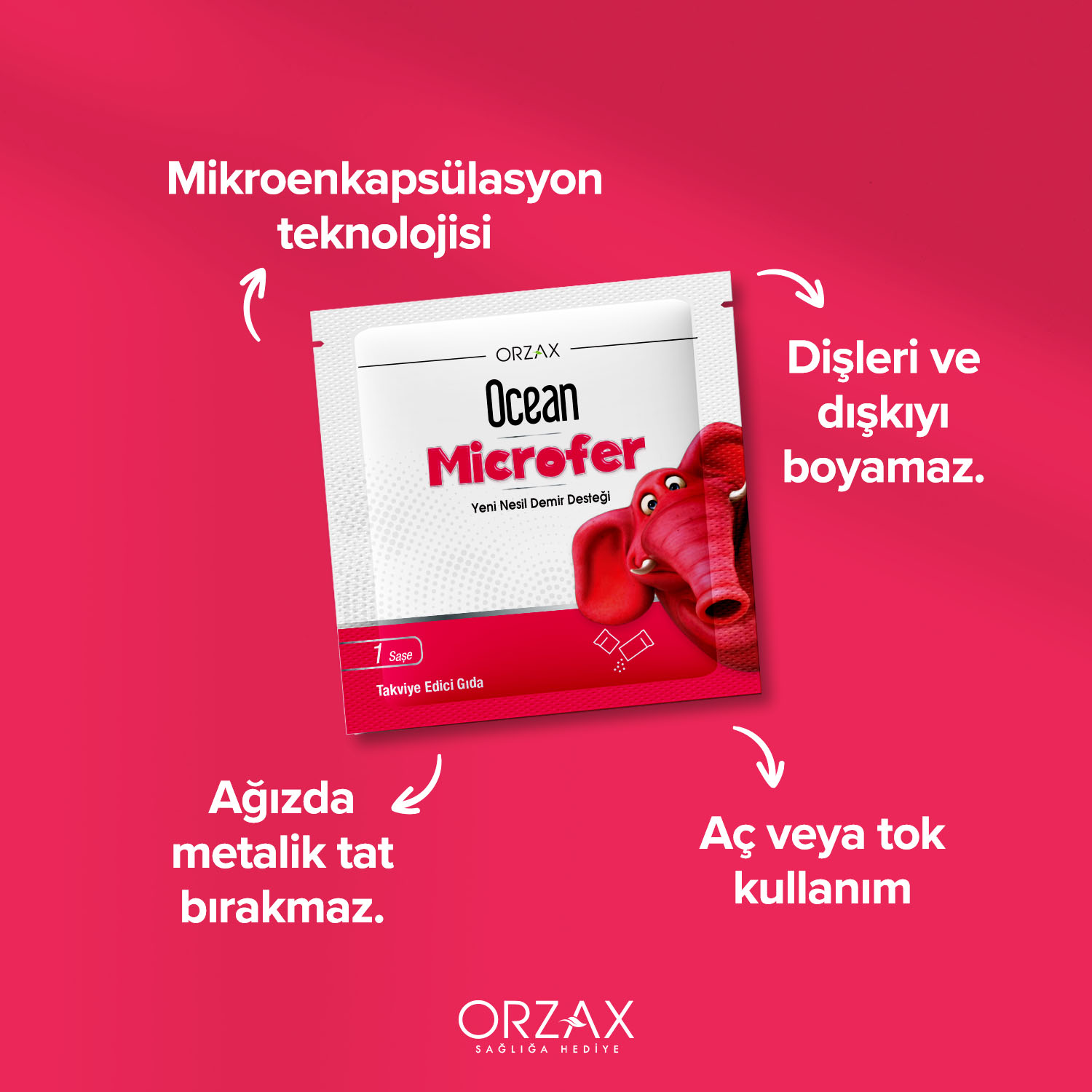 Ocean Microfer saşe, mikroenkapsülasyon teknolojisi ile üretilmiş demir içeren bir takviye edici gıdadır. Aç veya tok fark etmeksizin gıdalarla birlikte tüketilebilir. Aç veya tok farketmeksizin gıdalarla birlikte tüketilebilir.