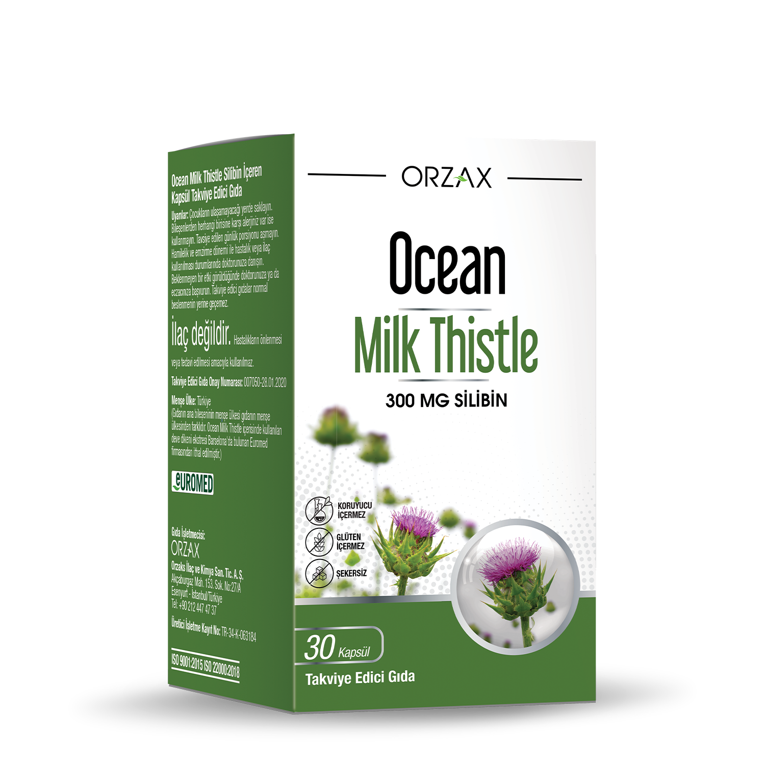 Ocean Milk Thistle, her kapsülünde standardize milk thistle (deve dikeni) ekstresi içerir. Her kapsülde 300 mg, deve dikeni bitkisinin aktif bileşeni olan silibin içerir. Ocean Milk Thistle içerisinde kullanılan milk thistle ekstresi GACP (İyi tarım ve toplama uygulamaları) doğrultusunda üretilen, aynı oranda silibin içeren standardize bitki ekstresidir.