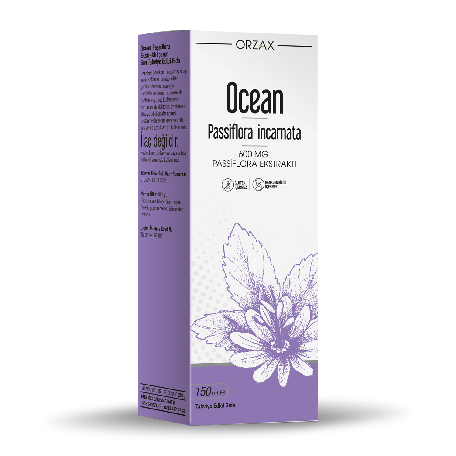 Passiflora incarnata, Passifloraceae familyasına özgü, yüzyıllardır tedavi amaçlı kullanılan bir bitkidir. Ocean Passiflora İncarnata Likit, her 5 ml’de 600 mg Passiflora ekstresi içeren bir gıda takviyesidir. Ocean Passiflora İncarnata Likit, vanilya aroması ile lezzetli bir içim ve kullanım kolaylığı sunar .Renklendirici, glüten içermez.
